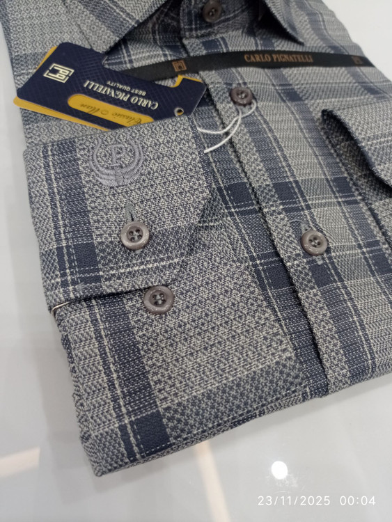 پیراهن مارک carlo پیراهن کلاسیک دوخت رگولار دارد و از بهترین پارچه نخی ایرانی کارخانه جواهر بافت و دوخت صنعتی تهران استفاده شده ولای یقه و آستین ترکیه استفاده شده که علاوه بر دوام ، تن خور زیبا و راحت ایجاد کرده است.