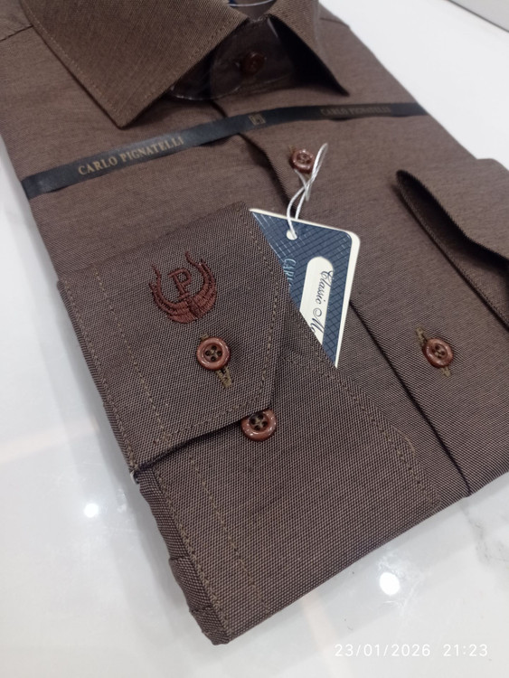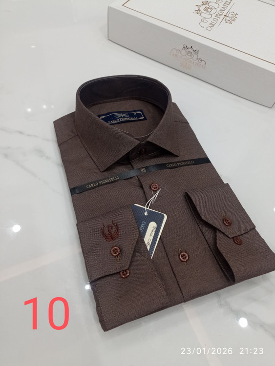پیراهن مارک carlo پیراهن کلاسیک دوخت رگولار دارد و از بهترین پارچه نخی ایرانی کارخانه جواهر بافت و دوخت صنعتی تهران استفاده شده ولای یقه و آستین ترکیه استفاده شده که علاوه بر دوام ، تن خور زیبا و راحت ایجاد کرده است.