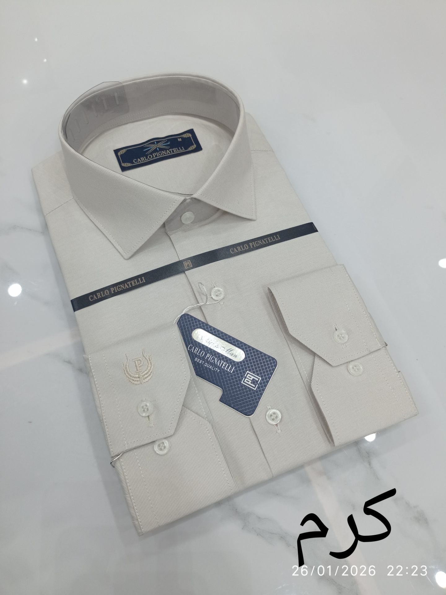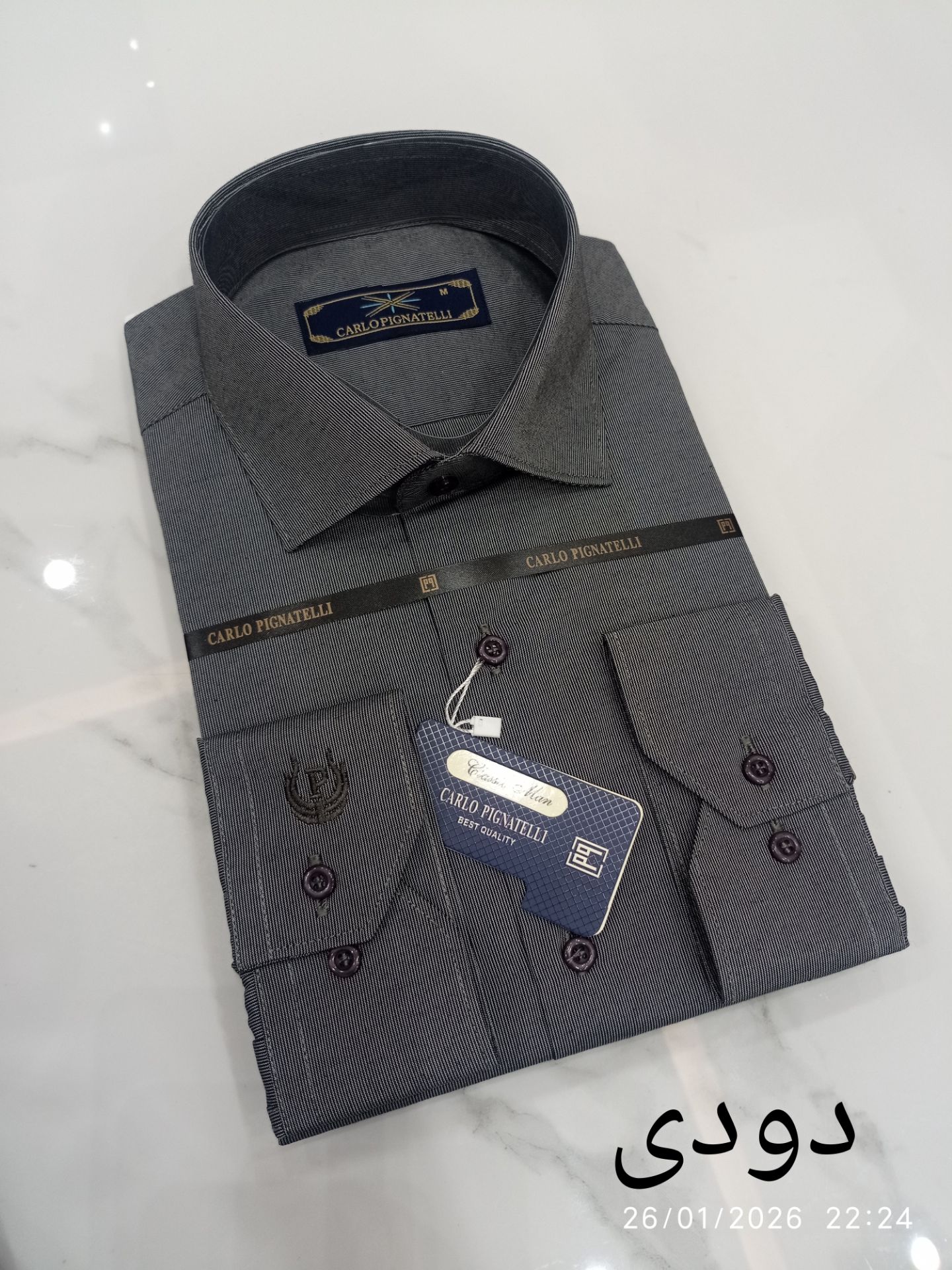 یراهن مارک carlo پیراهن کلاسیک دوخت رگولار دارد و از بهترین پارچه نخی ایرانی کارخانه جواهر بافت و دوخت صنعتی تهران استفاده شده ولای یقه و آستین ترکیه استفاده شده که علاوه بر دوام ، تن خور زیبا و راحت ایجاد کرده است.