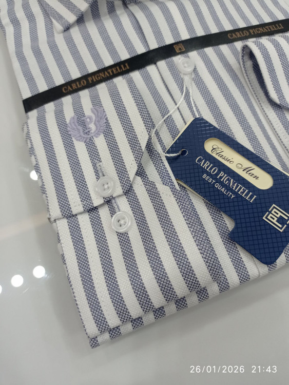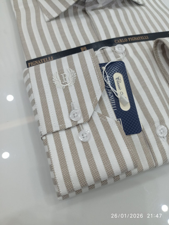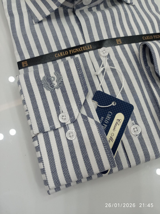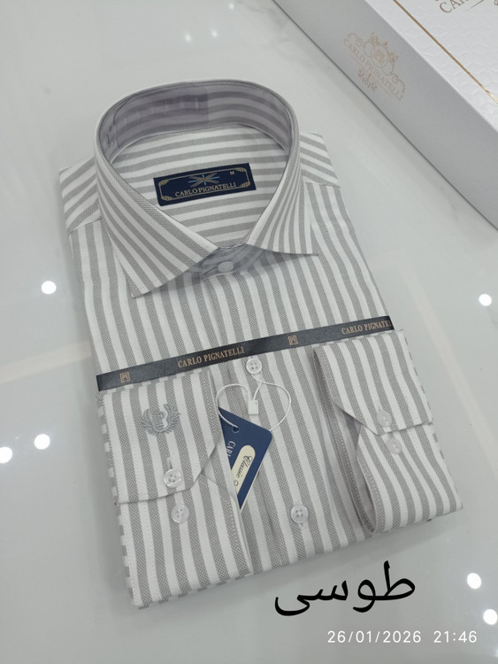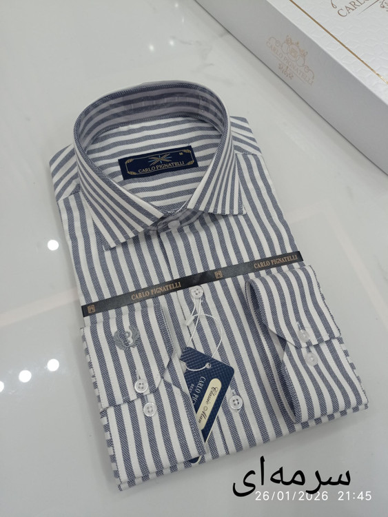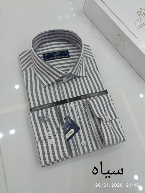 پیراهن مارک carlo پیراهن کلاسیک دوخت رگولار دارد و از بهترین پارچه نخی ایرانی کارخانه جواهر بافت و دوخت صنعتی تهران استفاده شده ولای یقه و آستین ترکیه استفاده شده که علاوه بر دوام ، تن خور زیبا و راحت ایجاد کرده است.