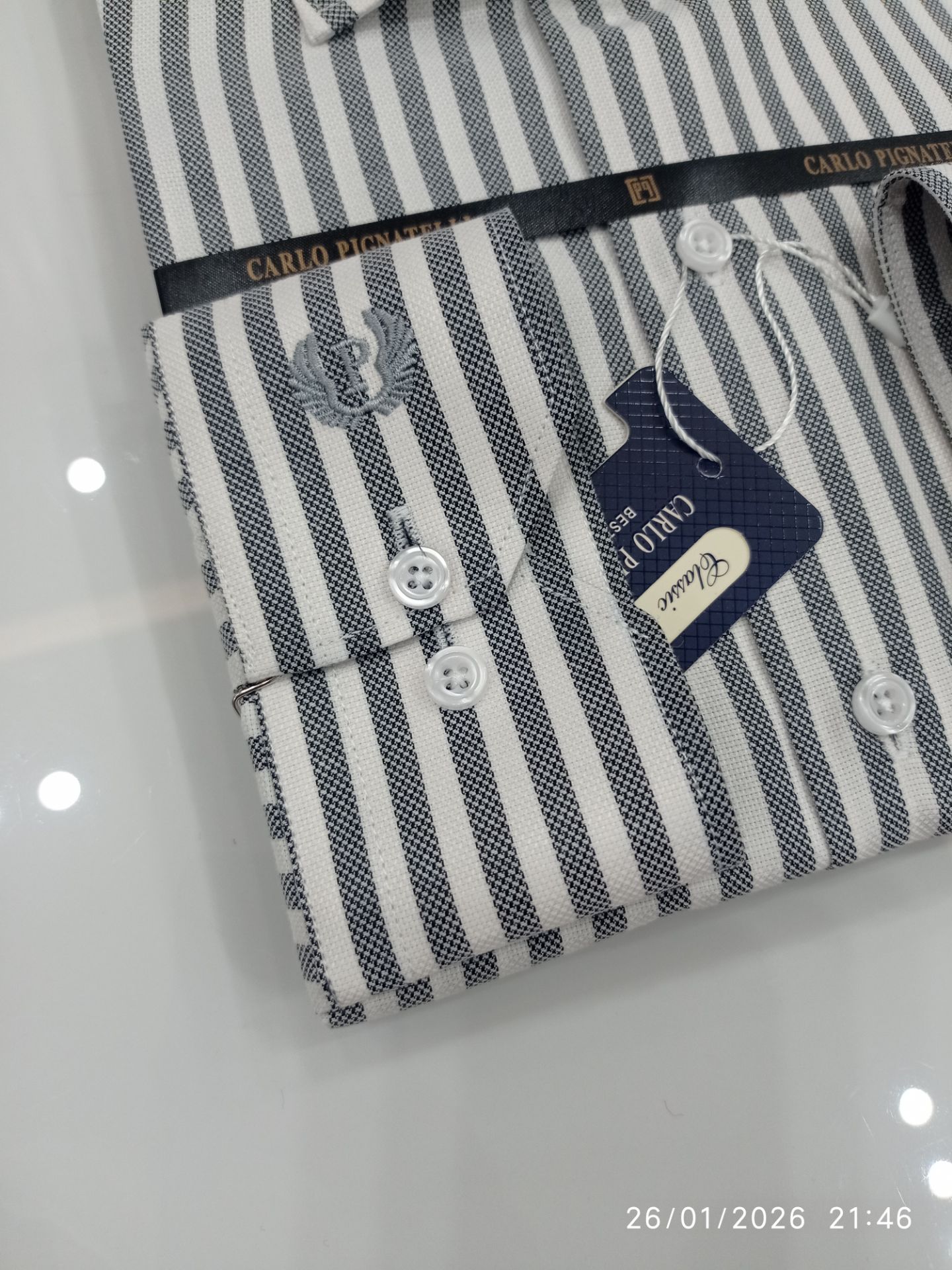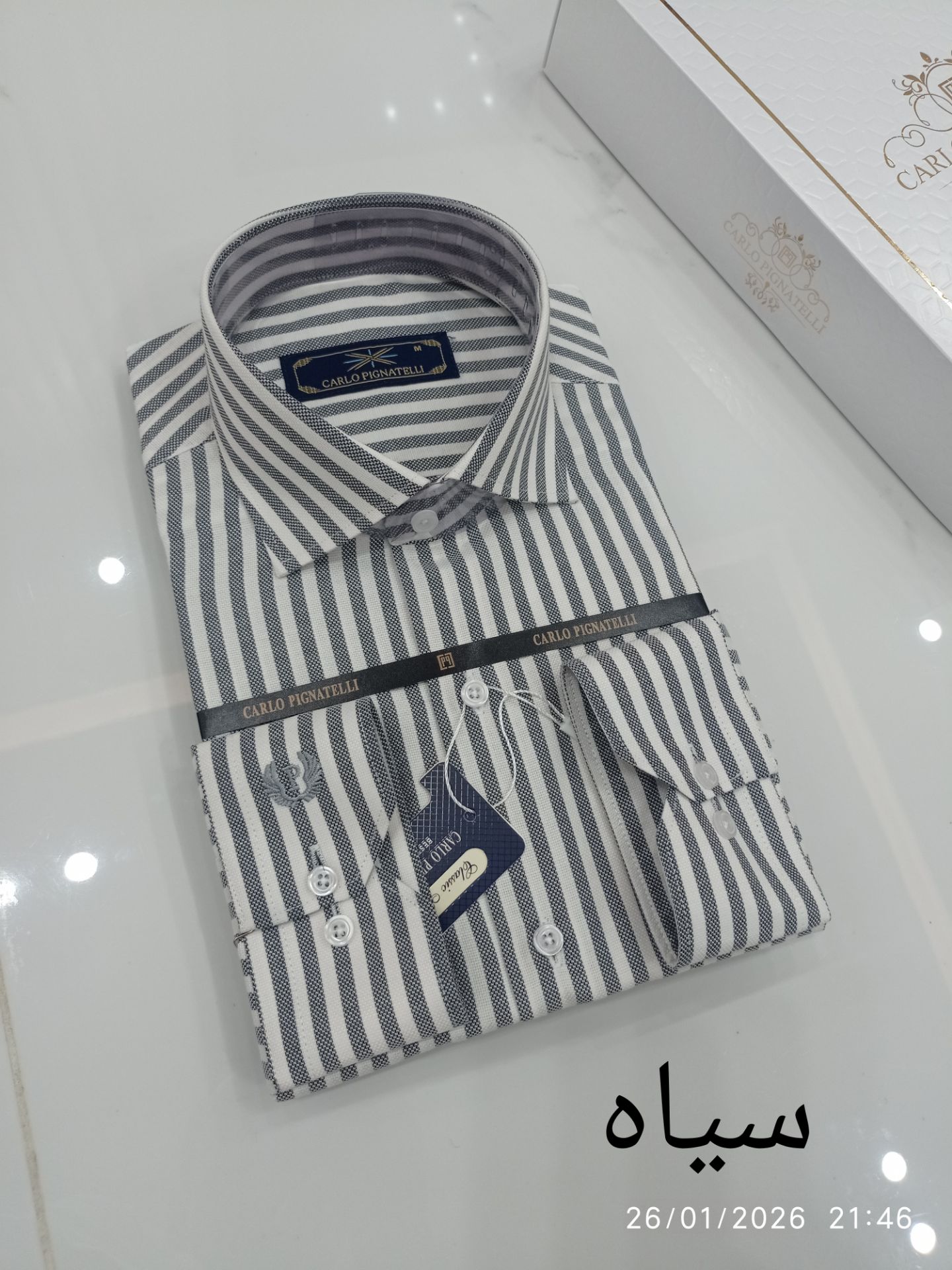 پیراهن مارک carlo پیراهن کلاسیک دوخت رگولار دارد و از بهترین پارچه نخی ایرانی کارخانه جواهر بافت و دوخت صنعتی تهران استفاده شده ولای یقه و آستین ترکیه استفاده شده که علاوه بر دوام ، تن خور زیبا و راحت ایجاد کرده است.